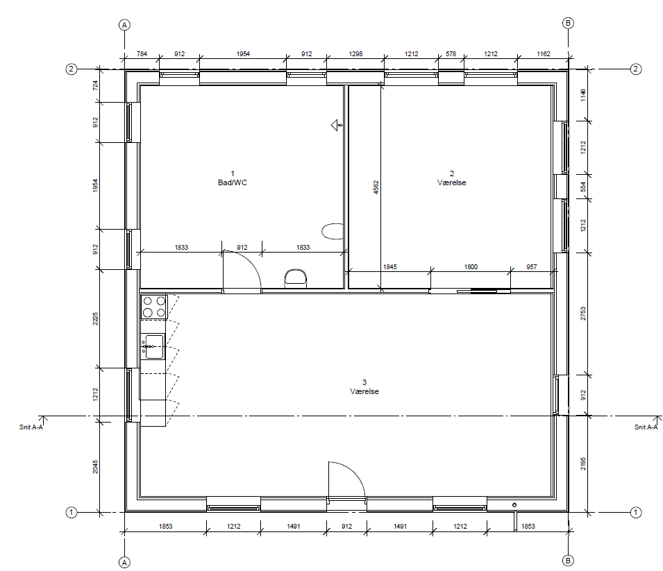 Digital optegning af håndtegnede skitser i Autodesk Revit 2025 eksporteret til målfaste pdf'er i passende størrelse. I forbindelse med optegningen gives også forslag til optimering af udformningen.